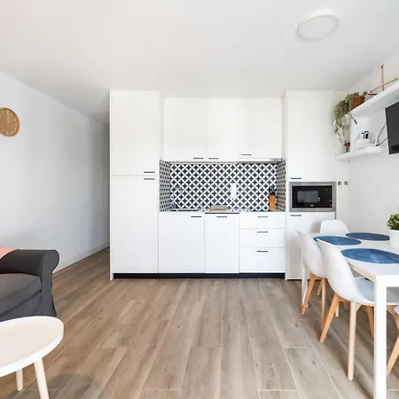 Gasten die in La Cardina - Apartamento En La Costa Brava verblijven, kunnen profiteren van voorzieningen, zoals een ingerichte keuken, evenals een eethoek buiten.